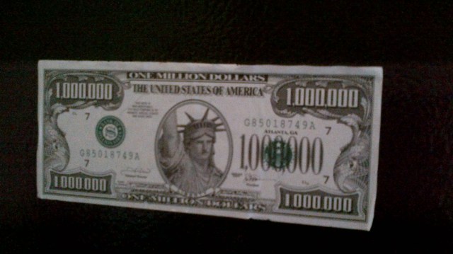 My Million Dollar Bill. It’s not real of course, but it all the money I have right now. If you like this blog, feel free to donate to Youtopiamedia.com through PayPal. It’s urgently needed! Our email address is youtopiamedia@gmail.com. Thanks!