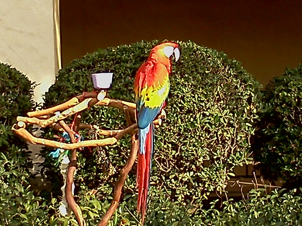Walking in Balboa Park, here in San Diego, I always see beautiful parrots that have been rescued by the San Diego Parrot Education Society. Some of these birds have been smuggled in from South America and then neglected and found by the Parrot Education Society. It’s the best part of my walk in the park when I see these recovering birds.