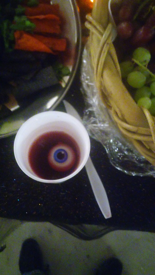 They served punch with ice eyeballs in it. Here’s my drink.